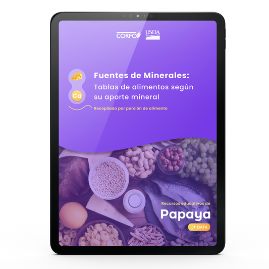 Conoce las principales fuentes alimenticias para 9 minerales esenciales. Obtendrás para cada mineral: Listado de alimentos con su aporte mineral para 1 porción junto a su cobertura respecto a la dosis diaria recomendada (%VD).